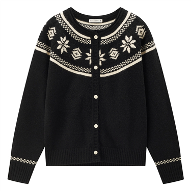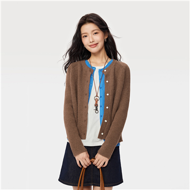 Contrasting crewneck loose cardigan