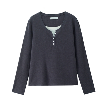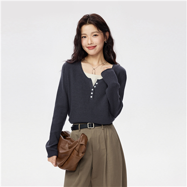 Fake 2-piece contrasting cerwneck sweater