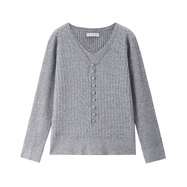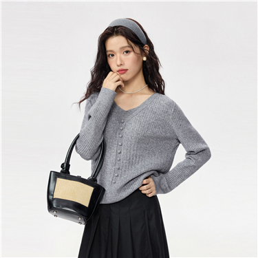 V-neck bracelet sleeve butoon placket cardigan