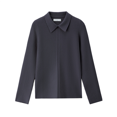 Front seam detail turndown collar sweater