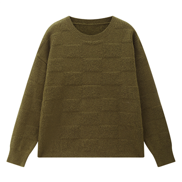 Textured check crewneck sweater