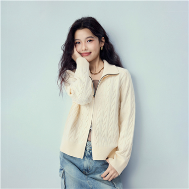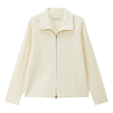 Cable knit two-way zipper cardigan