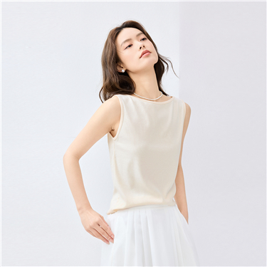Boat neck slim sleeveless rib top