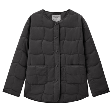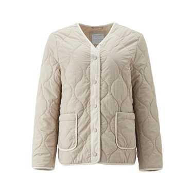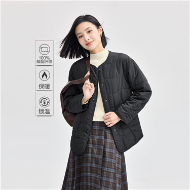Round neck side vents square quilted jacket