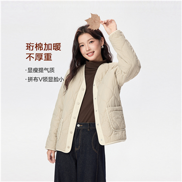 Knitted collar spliced quilted jacket