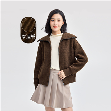Teddy Fleece-Lined Zip Front Hooded Design Jackets