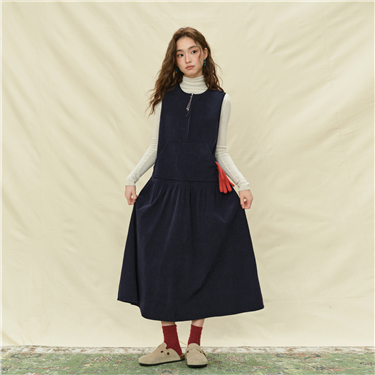 Corduroy Button Closure Side Vents Solid Color Skirts