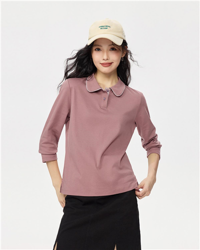 Contrasting placket long sleeve cotton polo shirt