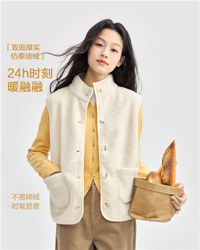 Teddy Fleece-Lined Stand Collar Sleeveless Vests