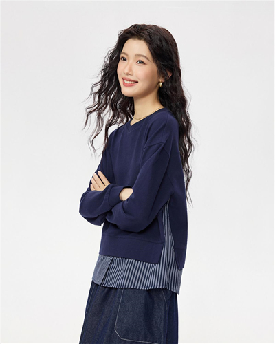 Stripe patchwork hem crewneck sweatshirt
