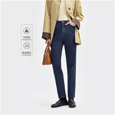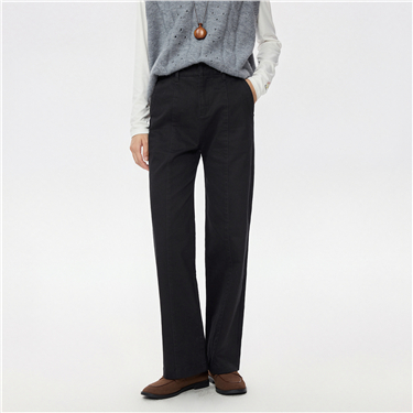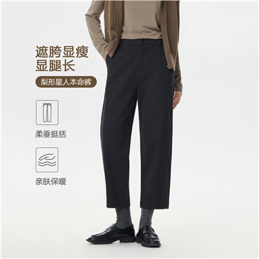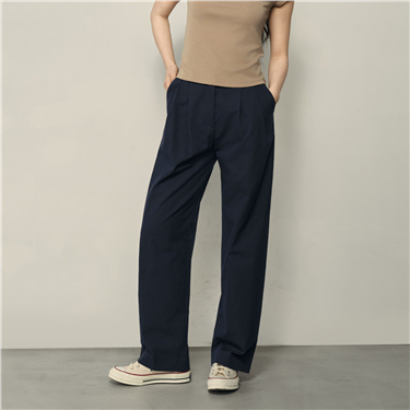 Sanding Semi-Elastic Waist Woven Casual Leg Ankle Length Pants