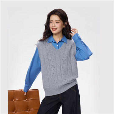 【網上獨家】女裝假門筒圓領修身坑條針織背心