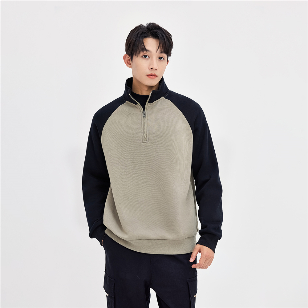 男裝加絨拼色立領半拉鏈衛衣