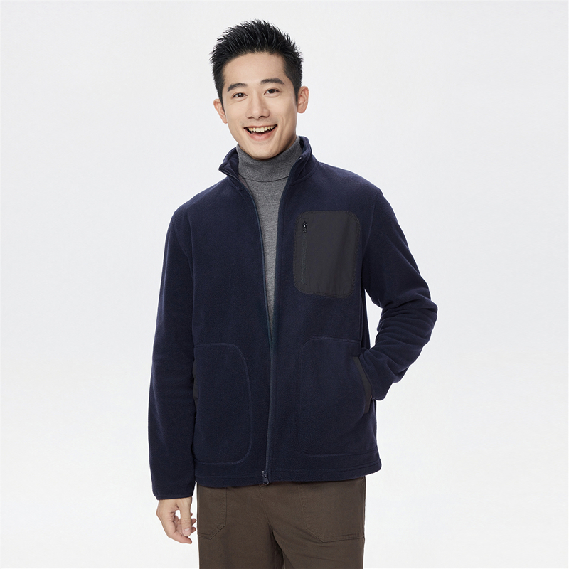 男裝搖粒絨拼布立領外套