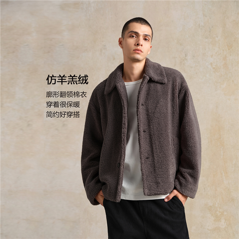 男裝仿羊羔絨翻領外套