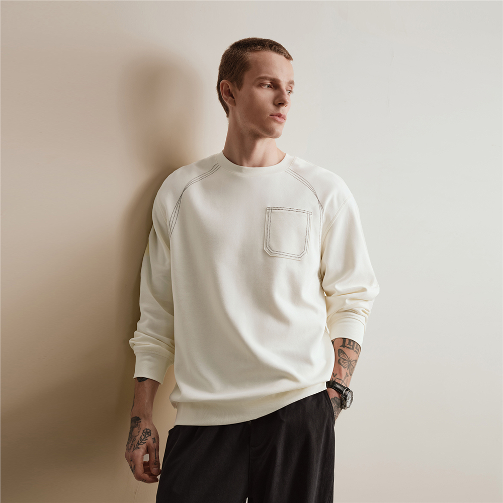 男裝撞色明線口袋套頭衛衣