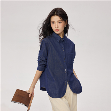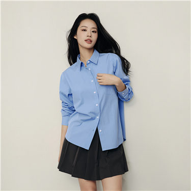 Women's Korea Collection Cotton Plaid Pocket Woven Long-Sleeve Shirt