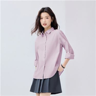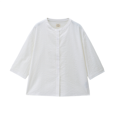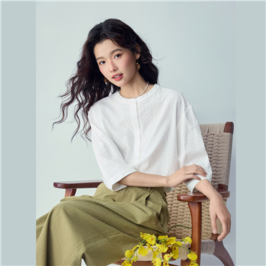 Subtle jacquard stripe 3/4 sleeve cotton blouse