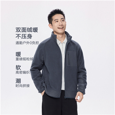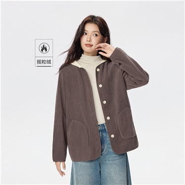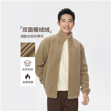 Faux Lamb Wool Knitted Casual Jacket with Stand Collar